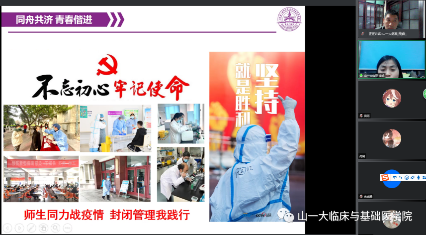 为充分发挥“领航工程”引领青年员工的作用,响应校(院)党委在五四青年节期间深入开展“领航工程”活动,2022年4月30日,三亿体育病原生物学教研室党支部与2021级临床医学本科6班、10班以及2019级临床医学本科5班全体同学举行了“我为抗疫做贡献”主题交流会。