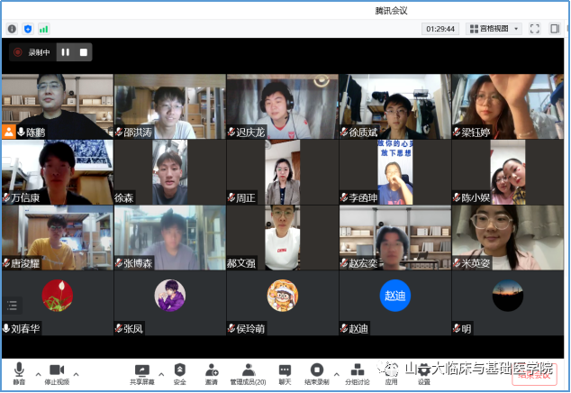 在活动中,与会党员教师首先与同学们共同学习了习近平总书记在中国人民大学考察的讲话精神,跟随习近平总书记的脚步,重温了习近平总书记的五四时间。随后支部书记陈鹏以讲党课的形式与同学们共同学习了“五四精神”的历史意义和时代内涵,倡导大家做新时代有为青年。最后,活动以“我的青春我做主”为主题,与会党员教师与同学们交流了新时代不同年龄的人对青春的理解。与会党员教师们要求同学们要牢记习近平总书记的嘱托,“不断提高与时代发展和事业要求相适应的素质和能力”“既多读有字之书,也多读无字之书”“特别是要克服浮躁之气,静下来多读经典,多知其所以然”。随后,结合当前的疫情防控,引导同学们思考抗疫中新时代青年应该担负的时代使命,要立大志、明大德、成大才、担大任,作为一名医员工有责任和义务在学习好医学知识的同时弘扬前辈们的奉献精神。