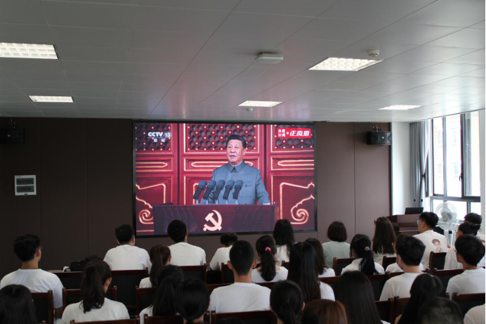 接着,同学们来到老员工活动中心,共同观看习近平总书记在庆祝中国共产党成立100周年大会上的重要讲话。习近平总书记强调,一百年前,中国共产党的先驱们创建了中国共产党,形成了坚持真理、坚守理想,践行初心、担当使命,不怕牺牲、英勇斗争,对党忠诚、不负人民的伟大建党精神,这是中国共产党的精神之源。我们要继续弘扬光荣传统、赓续红色血脉,永远把伟大建党精神继承下去,发扬光大。听完习近平总书记的讲话,同学们备受鼓舞,坚信自己将承担起祖国的重托,在党的光辉照耀下,把自己的人生理想与祖国,与时代紧紧联系在一起,做个新时代的社会主义事业的建设者和接班人。