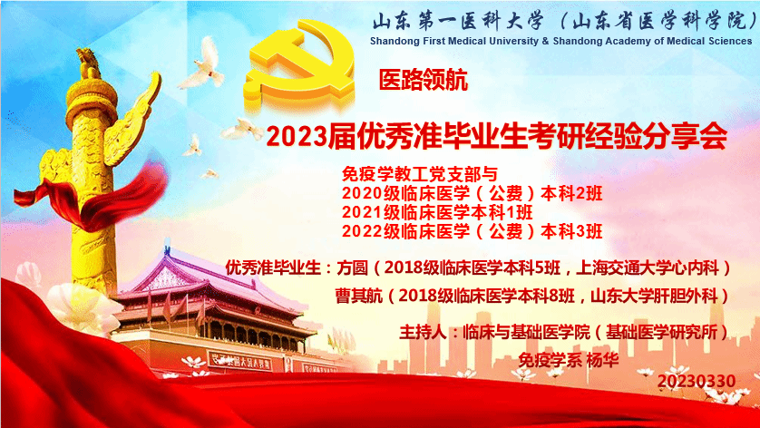 为引领医员工成才,培育高素质社会主义接班人,3月30日晚,三亿体育医学免疫学教工党支部与联系班级共同开展主题为“考研经验分享”的领航工程活动。