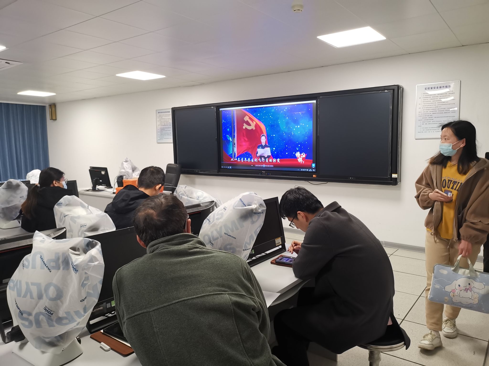 活动中,支部全体党员与员工们共同观看了中央组织部、中央广播电视总台联合制作的《榜样7》专题节目。该节目通过典型事迹展示、现场访谈、重温入党誓词等形式,生动展现中国共产党人坚定信念、践行宗旨、拼搏奉献、廉洁奉公的高尚品质和精神风范,大家被他们的优秀事迹深深打动,特别是其中的两位榜样事迹使同学们产生了强烈的共鸣。
