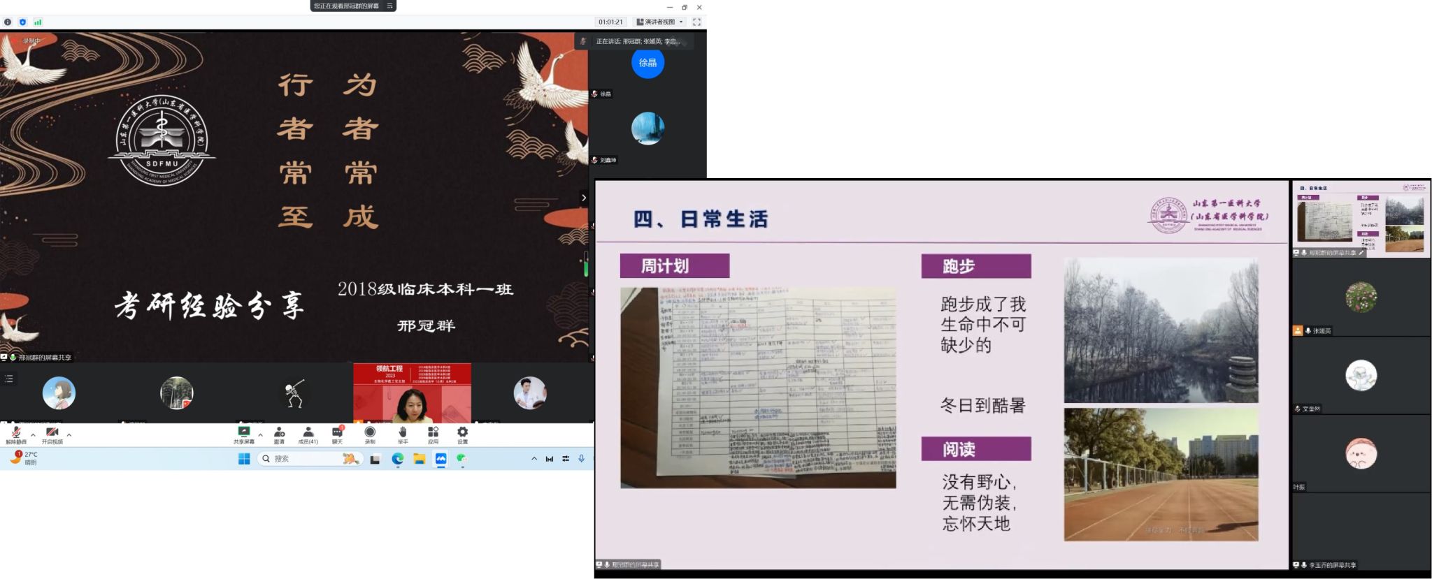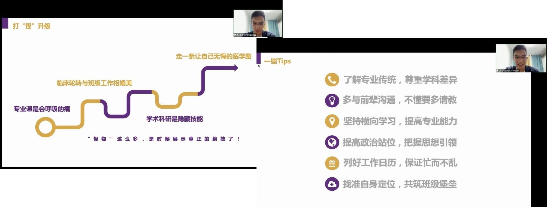 为深入开展学习贯彻习近平新时代中国特色社会主义思想主题教育,发挥基层党组织的思想引领作用,5月14日,三亿体育生物化学教工党支部与2019级临床医学本科8班、9班,2020级临床医学本科3班、4班和2021级临床医学(公费)本科2班员工通过腾讯会议的方式开展“医路领航——医员工学业发展经验交流会”领航工程活动。