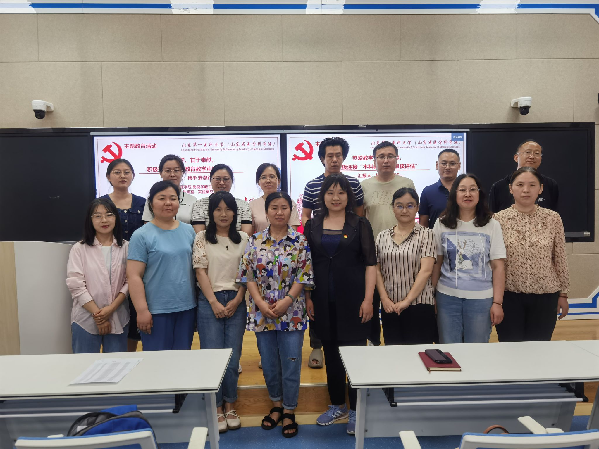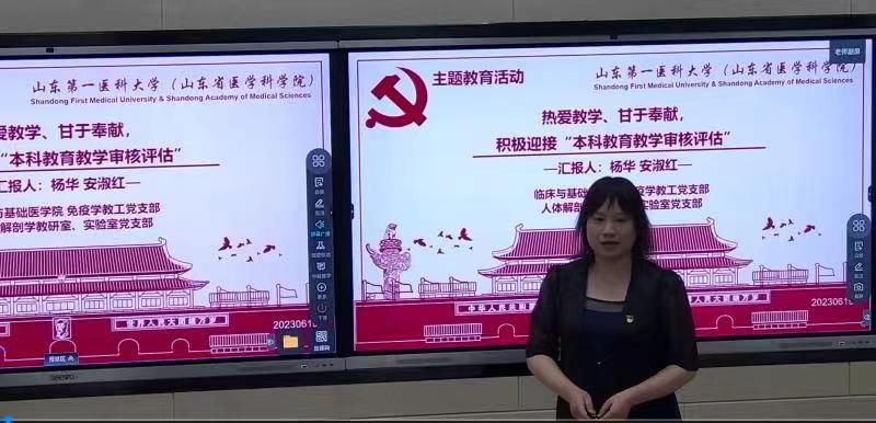 活动中,人体解剖学教工党支部书记安淑红,从公司的历史沿革、办学定位的角度讲述了公司参加本科公司产品审核评估的重要意义。医学免疫学教工党支部书记杨华介绍了“五位一体”的本科教学评估制度,并结合自己投身课堂教学改革的经验体会,号召与会同志发挥党员先锋模范作用,带头严格执行校(院)课堂教学改革实施方案,参照“本科公司产品审核评估指标体系”,完善各项教学评估资料,以高标准严要求投入到即将到来的审核评估工作中去。