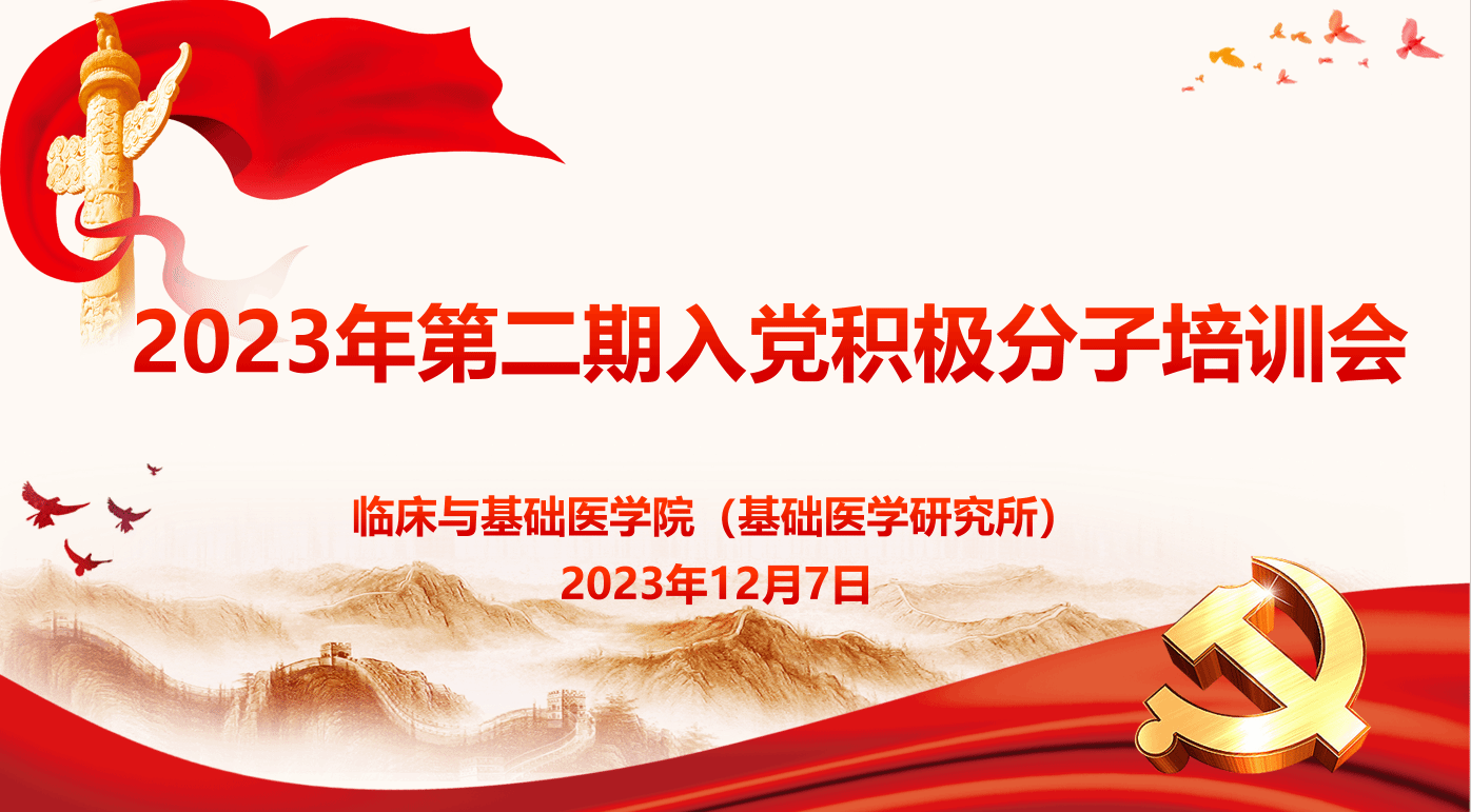 为深入学习贯彻习近平新时代中国特色社会主义思想,切实提高入党积极分子的思想政治觉悟,2023年12月7日,临床与基础医学院(基础医学研究所)举办2023年第二期入党积极分子培训会。2021、2022级近200名入党积极分子参加了培训。