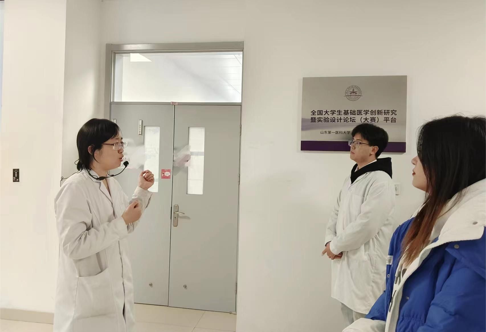 在支部书记韩琛老师的带领下,同学们来到校(院)全国老员工基础医学创新研究暨实验设计论坛(大赛)平台进行参观学习。该平台依托公司(所)医学实验技术实验室建设而成,是临床医学专业本科生进行老员工创新实验的一流平台,先后有数十项老员工创新科研项目依托本平台完成前期研究,并在国家及省校级大赛中获得优异成绩。