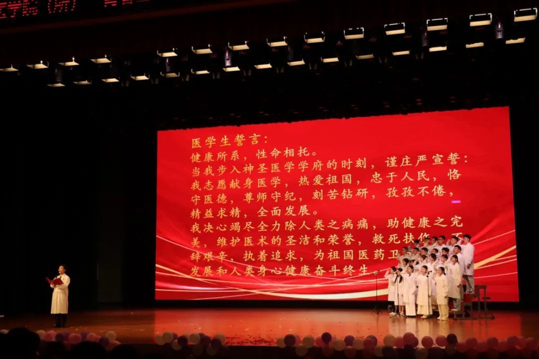 晚会进行了庄严的医员工宣誓,愿即将开启“医”路新旅途的学子们放飞梦想,书写华章,砥砺奋斗坚守医者初心,奉献青春铸就健康中国。全体师生共同起立,举起右手,庄严宣誓。