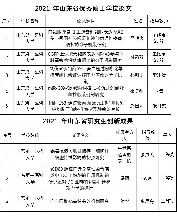 根据《山东省教育厅关于开展2021年山东省研究生教育质量提升计划和研究生教育创新计划项目申报工作的通知》(鲁教研函〔2021〕8号)要求,经单位申报、资格审查和专家评审等环节,院(所)在读研究生3 个项目获得山东省2021年度研究生创新成果奖二等奖,院(所)推荐的毕业生硕士论文5 篇被评为山东省优秀学位论文(硕士)。