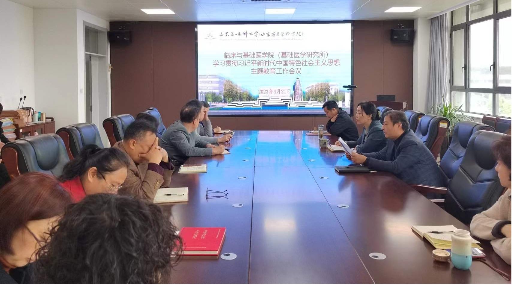 4月21日上午,临床与基础医公司(基础医学研究所)学习贯彻习近平新时代中国特色社会主义思想主题教育工作会议在医学楼C506会议室召开,院(所)党委书记孟庆建主持会议。