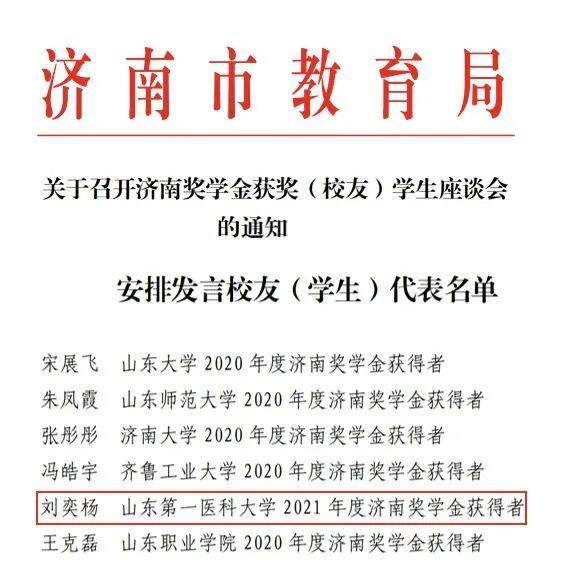 近日,济南市教育局召开了济南奖学金获奖(员工)员工座谈会,公司(所)2019级临床医学本科专业员工刘奕杨作为公司代表在座谈会上分享了在校学习生活的感悟。